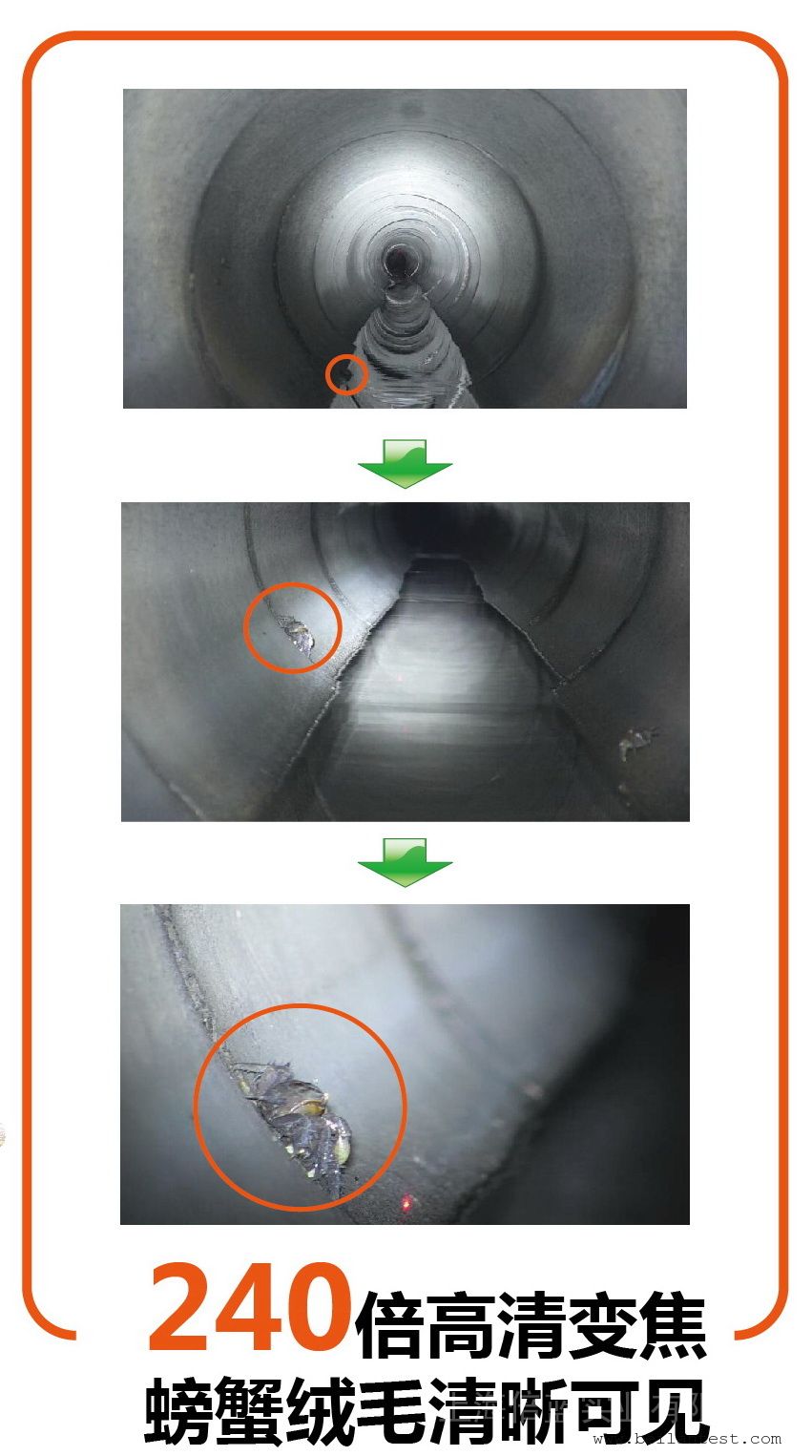 无线高清潜望镜可用于快速检测、诊断管道内部状况,在检测过程中,视频将通过无线信号传输到手持式工业平板控制器上,可以方便地通过触摸屏上的虚拟按钮,控制机头的俯仰,从而获取管道缺陷位置处的清晰图像; 同时可抓取、保存缺陷图像,录入文字、缺陷代码,叠加显示并保存到视频中,并可形成打印文档。