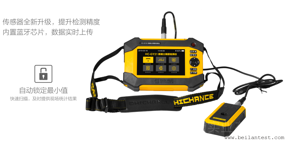 详细信息| 询价留言品牌:HC 型号:HC-GY21 加工定制:否 测量范围:6-190mm 测量精度:± 1 mm to ± 4 mm 直径测量范围:Ф6mm~Ф50mm 供电方式:内置可充电锂电池 用途:钢筋分布及走向、保护层厚度、钢 直径测量范围:Ф6mm~Ф50mm HC-GY21 混凝土钢筋检测仪应用领域