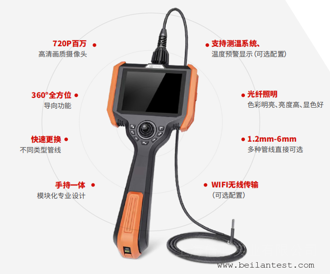 详细信息| 询价留言品牌:BLT 型号:BL-K 加工定制:否 探头直径:1.2mm-6mm mm 用途:桥梁、建筑、航空航天、汽车制造 加工定制:否 BL-K手持式工业内窥镜工业内窥镜BL-K是新推出的一款百万高清工业视频内窥镜产品,图像细腻清晰,可快速更换不同规格管线,插入管防水、耐油、耐磨,具备强大的软件功能,可适用于各类项目,主要用于汽车制造、航空航天、精密铸造、铁路船舶、压力容器、电力石化、管道焊接、物流、国防、军警、桥梁结构、建筑结构、混凝土结构内部钻孔验证等各类内部视觉检测场景,是一款能满足您各种环境需求的视频内窥镜。