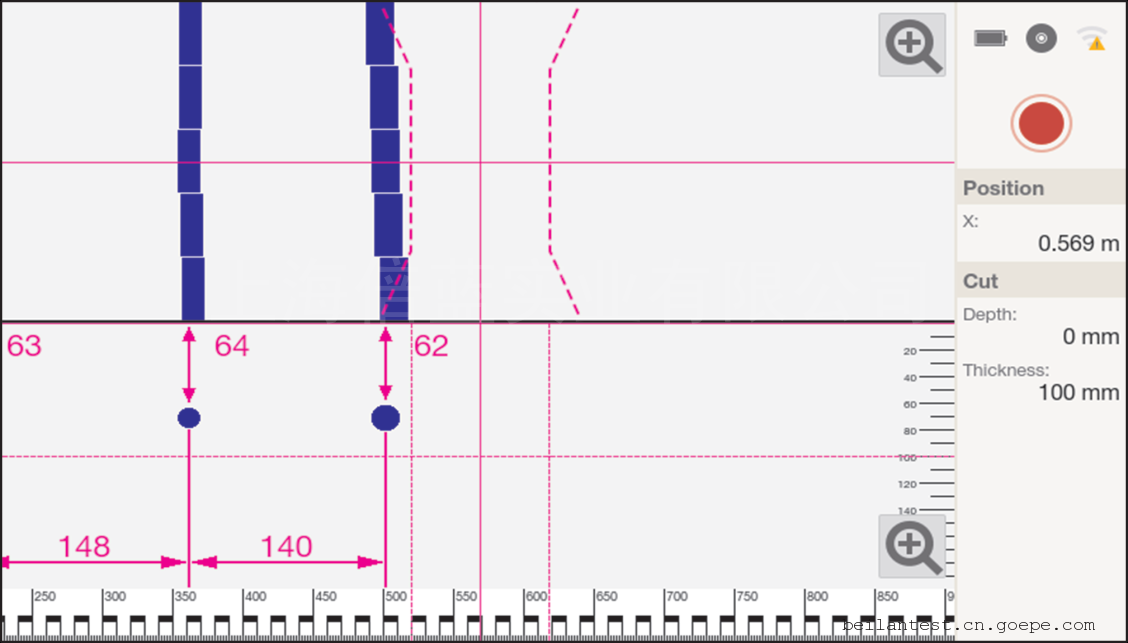 技术参数:探测范围 *大探测 200mm;钢筋间距:保护层厚度 (s:c) >= 1.2 : 1 (间距>36mm) 保护层探测精度 ±1mm @ <50mm, ±4mm @80mm 钢筋定位精度 ±3mm +1% 探测距离 钢筋直径估算范围 *大至 120mm 钢筋直径估算精度 ±1 钢筋等级 @ <100mm 深度;(PS250 是80mm) 内置钢筋标准 • DIN 488
