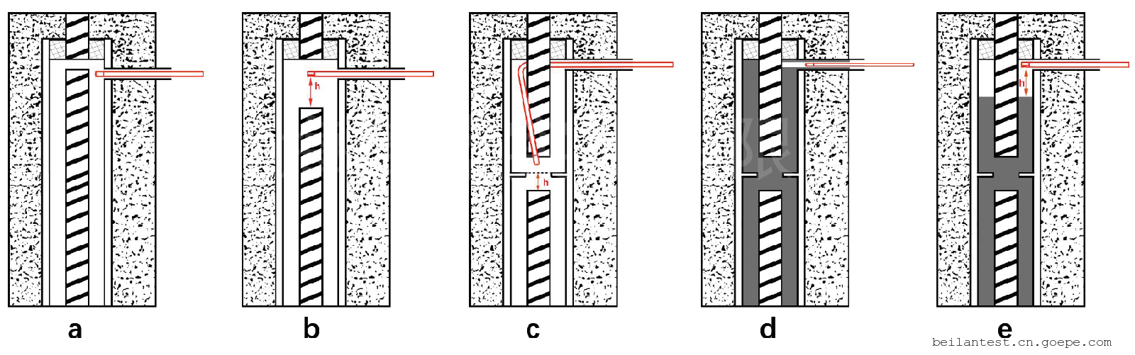 b)测量连接钢筋插入段末端到出浆孔道的相对距离是否满足要求