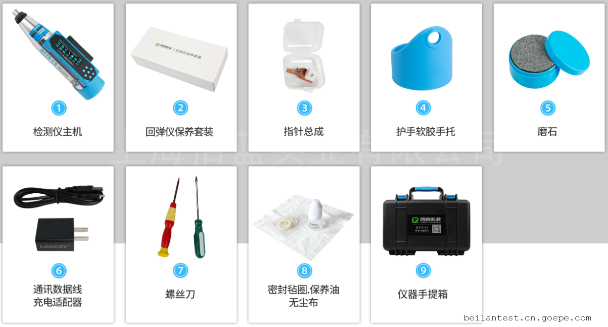 技术参数:测量范围 6~30 MPa 冲击动能 0.735 J 弹击拉簧拉伸长度 75±0.3 mm 指针摩擦力 0.5±0.1 N 弹击拉簧工作长度 61.5±0.3 mm 钢砧率定值 74±2 数据存储 1000个构件 液晶显示屏 2.8“OLED屏 供电方式 3200毫安时 3.7V 锂电池 示值一致性 <±0.5